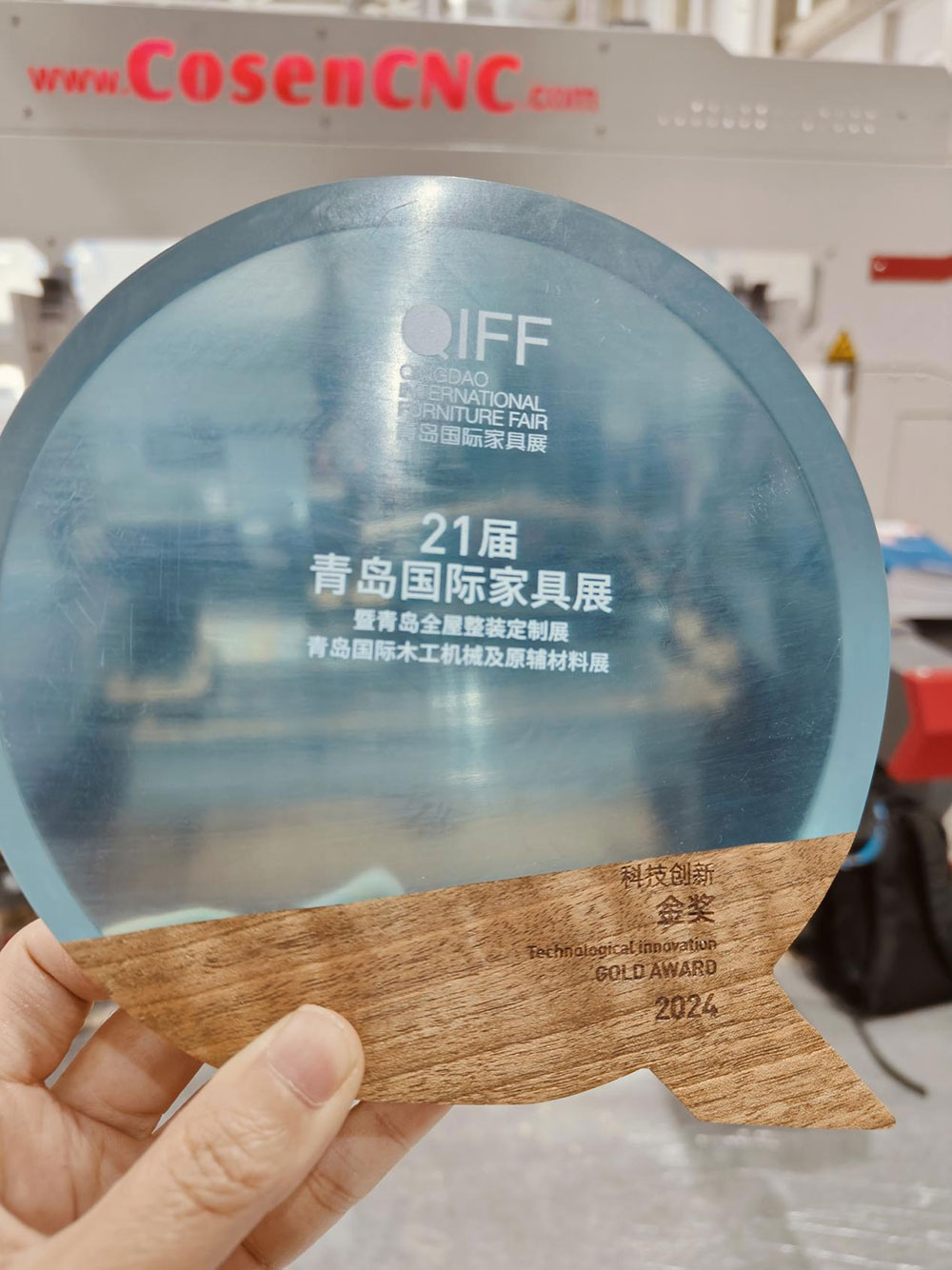 此次展會,濱州虎森數控設備科技有限公司憑借卓越的產品實力和創新精神,在眾多參展企業中脫穎而出,榮獲“21屆青島國際家具展-科技創新金獎”。